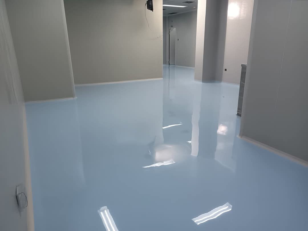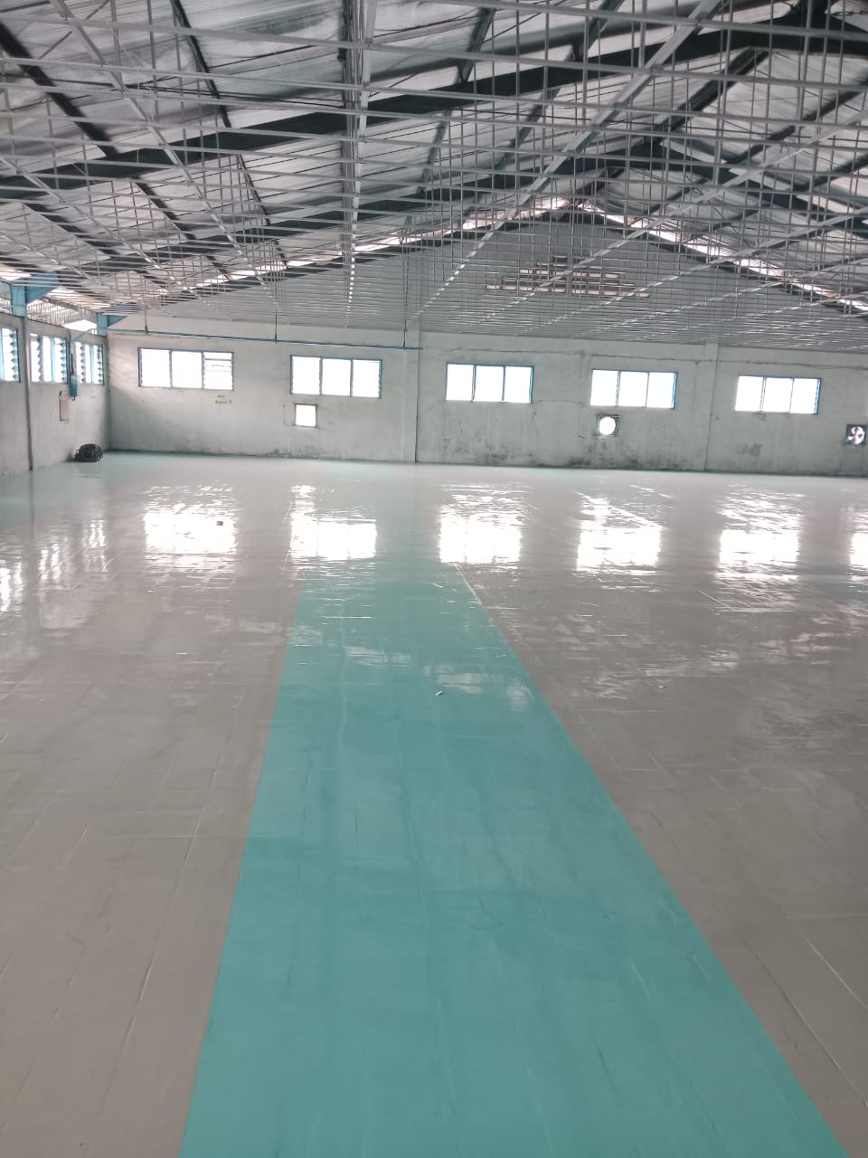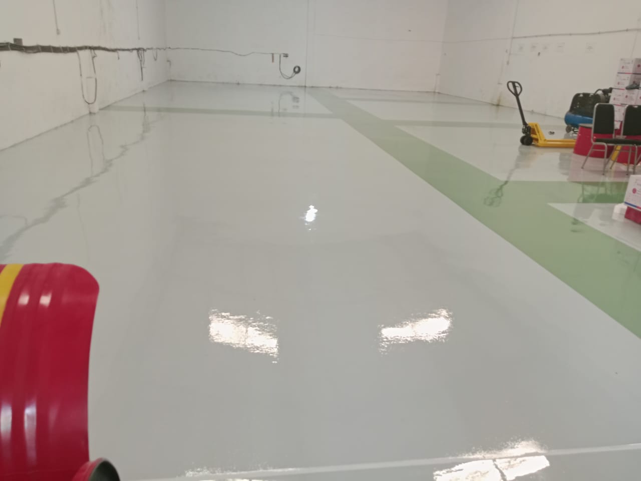 Layanan pelapisan lantai dengan bahan epoxy berkualitas yang menghasilkan permukaan kuat, halus, tahan kimia, dan mudah dibersihkan.