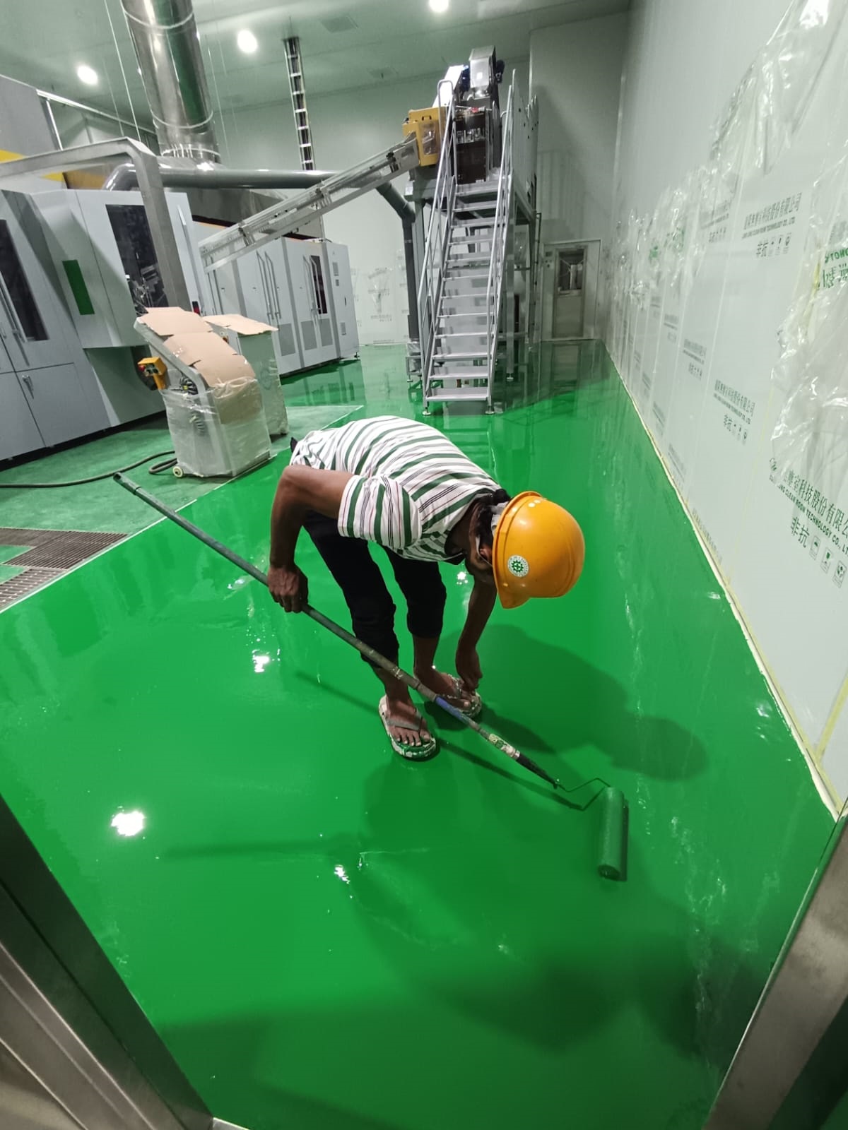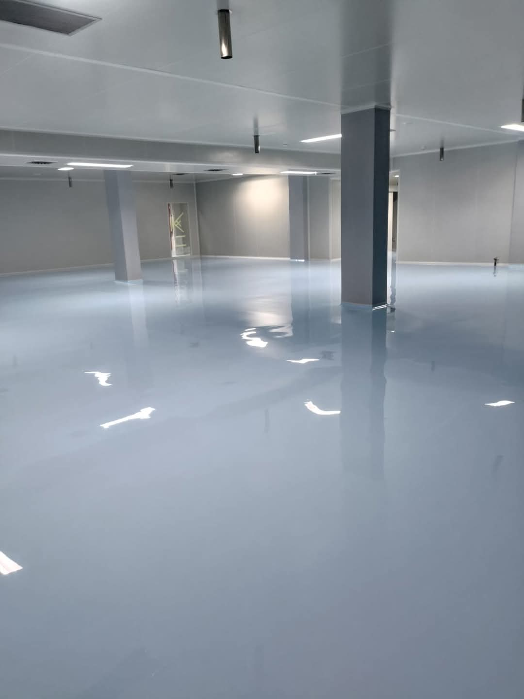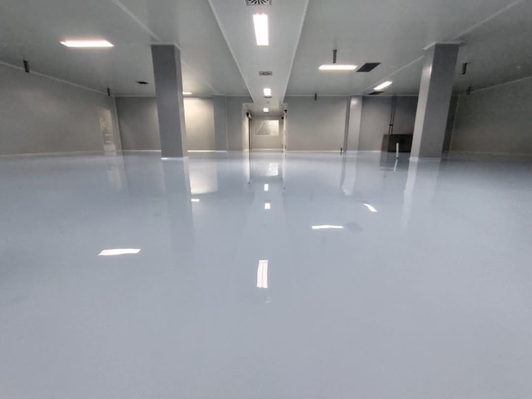 Layanan pelapisan lantai dengan bahan epoxy berkualitas yang menghasilkan permukaan kuat, halus, tahan kimia, dan mudah dibersihkan.